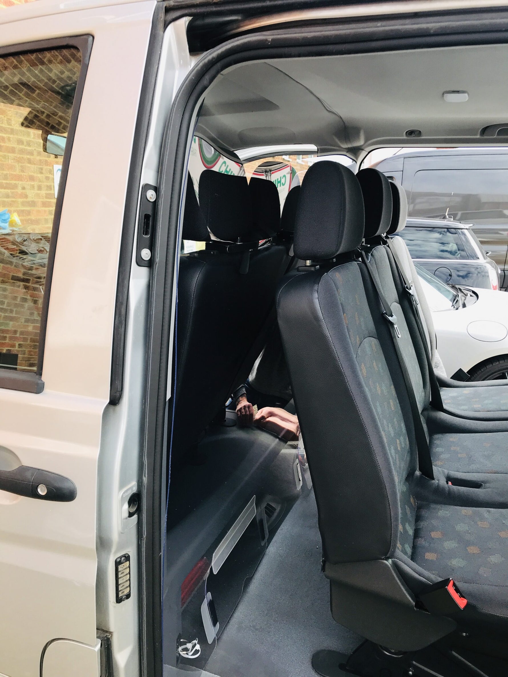 Made from 2mm glass clear PETG material. Personally designed to fit each vehicle. Secures with velcro straps around door pillars. Does not rattle or vibrate. Credit card machine/payment aperture. Adjustable to fit most models.