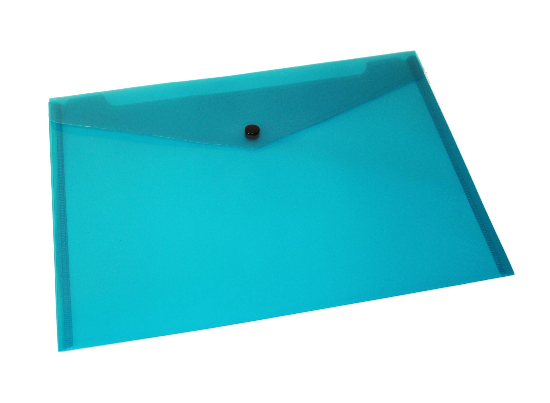 A4+ Turquoise Polypropylene popper wallet to take A4 sheets. Open on 1 long side, with flap and plastic press popper. Supplied in a pack of 5.