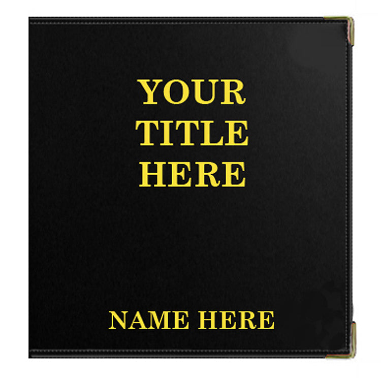 There is room for 3 lines of text in the title area and a name across the bottom of the cover.
